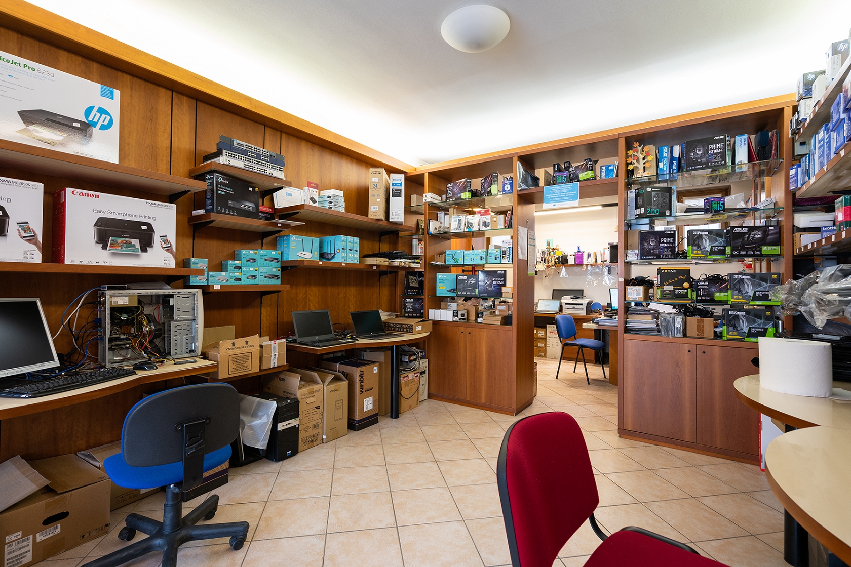 Negozio di vendita al dettaglio di computer, notebook, stampanti, cavi, accessori per computer, stampanti, cartucce per stampanti e software. Si effettuano inoltre riparazioni e assistenza informatica.
